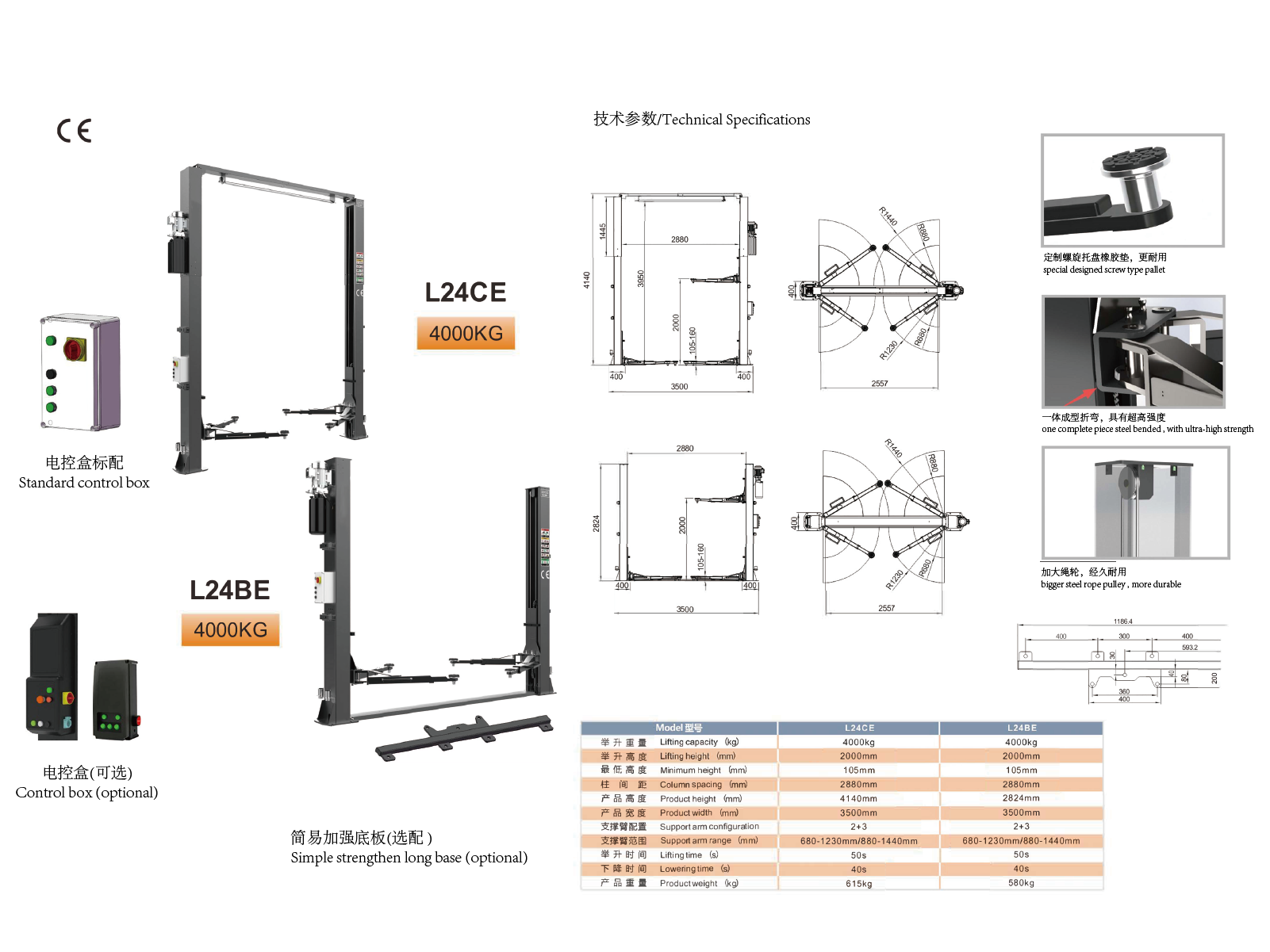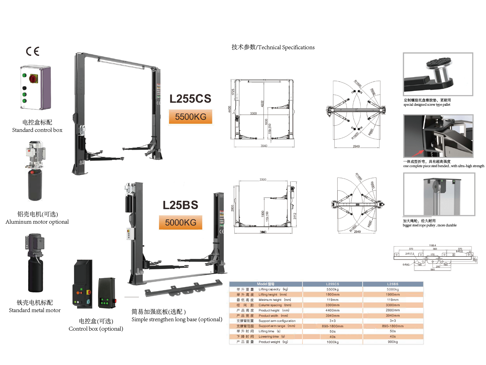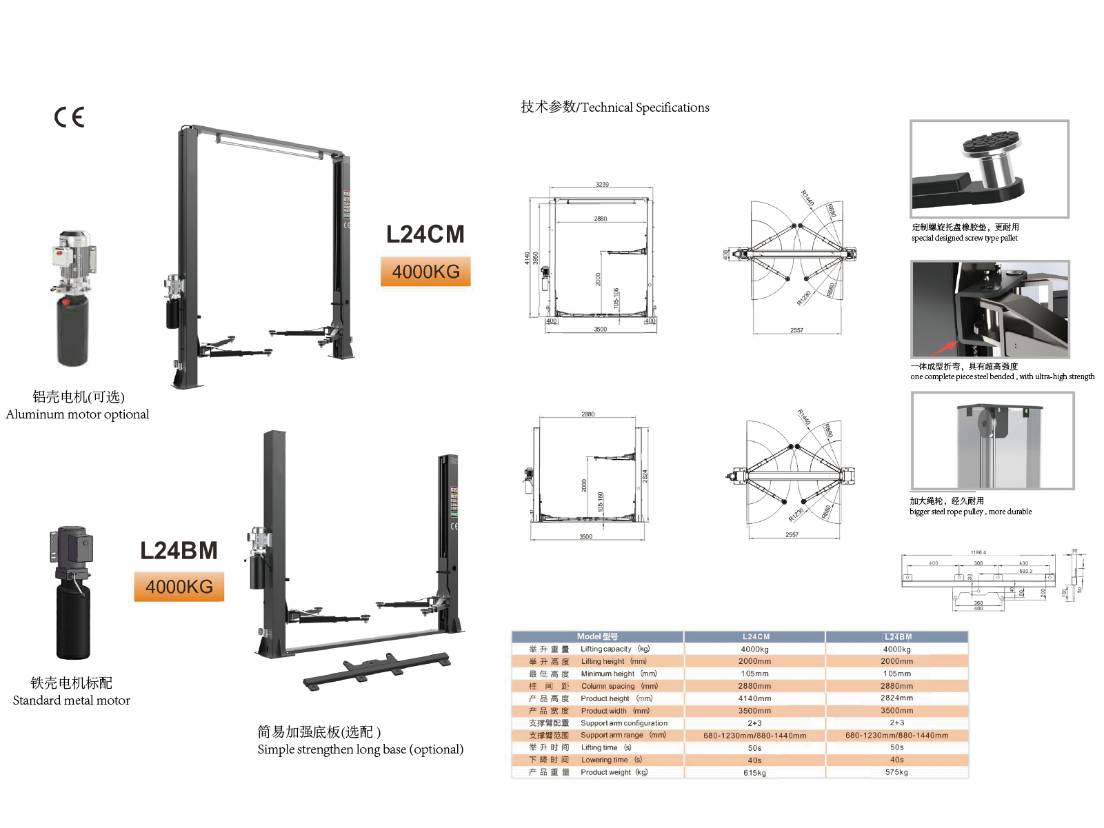 4T单边手动锁/电解锁双S举升机 4T Double Stwo Post Lift (manual /automatic)