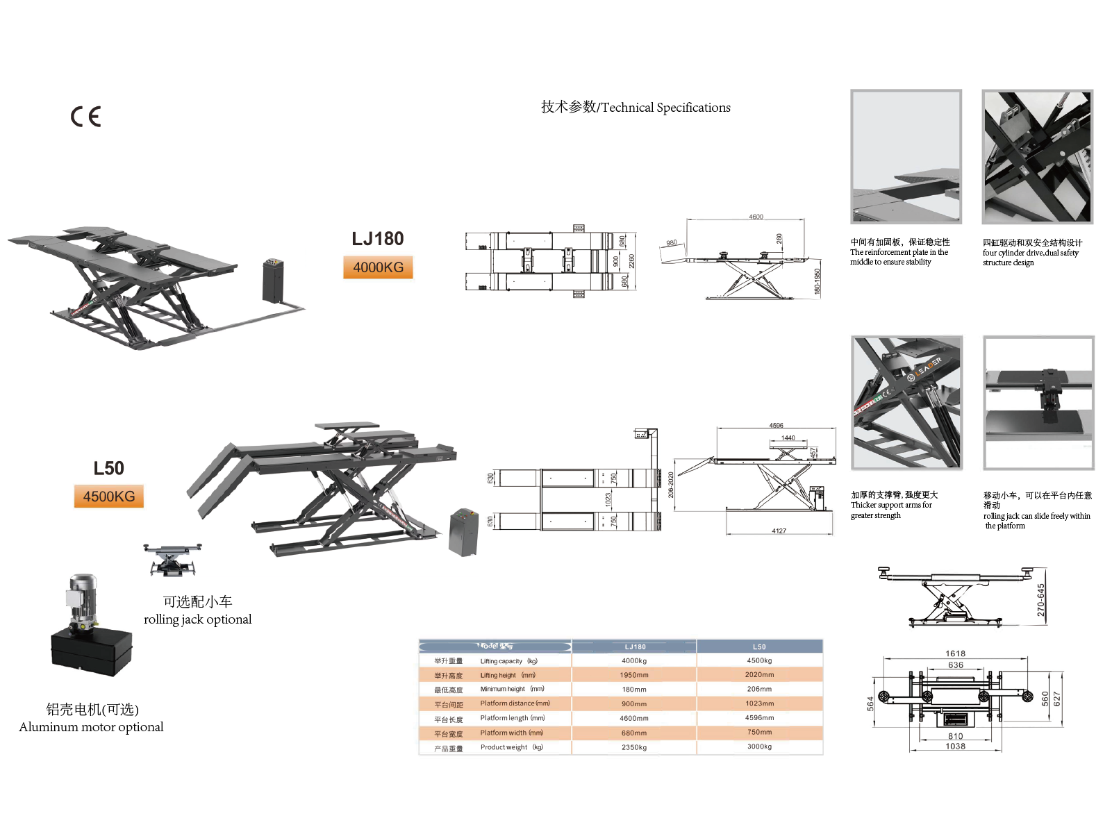 4T超薄定位剪式举升机 4.5T子母/定位跑车剪式举升机 4T Ultra-thin Alignment Scissor Lift/4.5T Alignment Scissor Lift