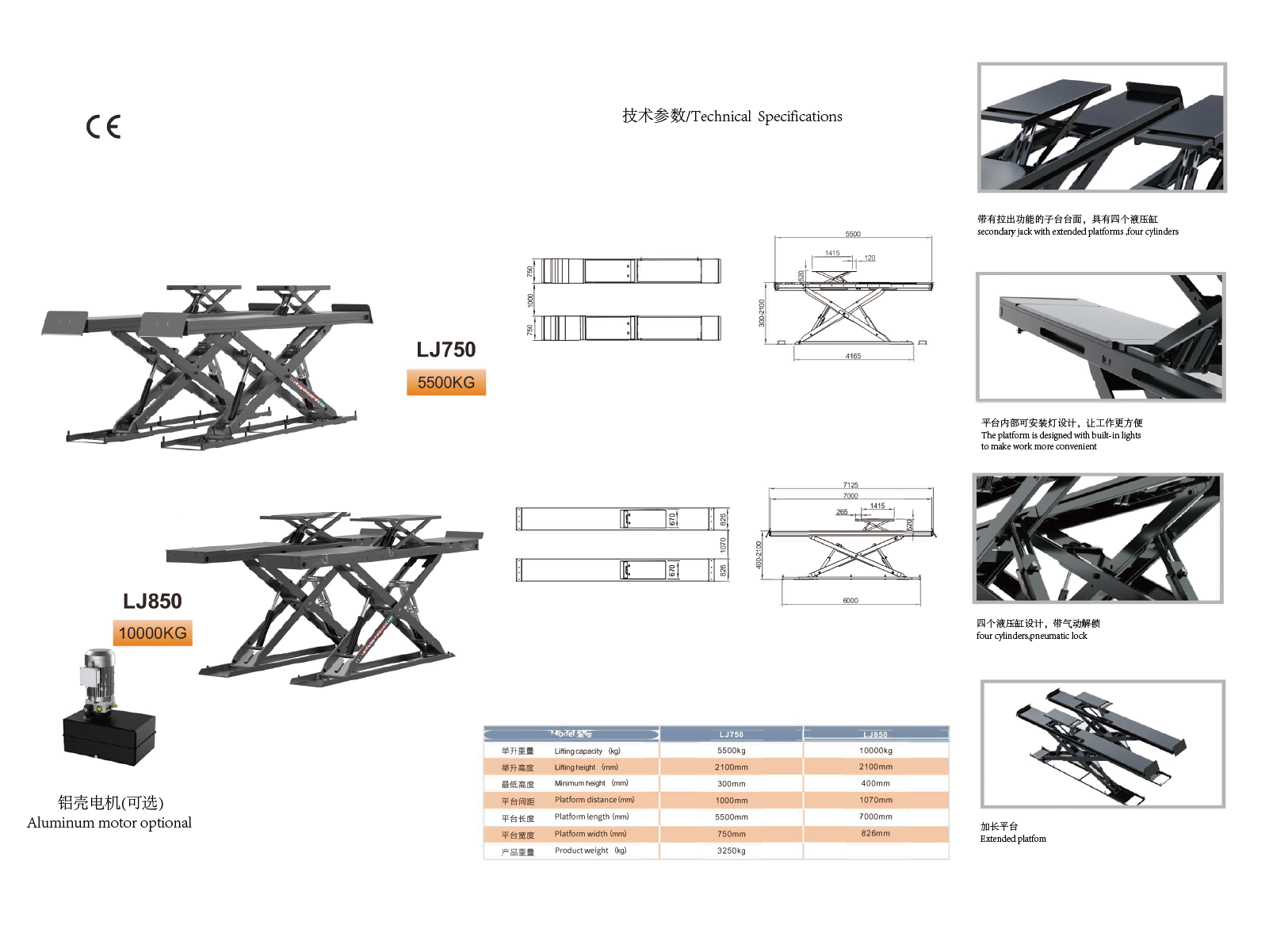 3.5T超薄小剪式举升机/3.5T埋地平台抽拉剪式举升机 3.5T Full Rise Scissor Lift/3.5T Inground Install Scissor Lift(platform Can Be Extented)